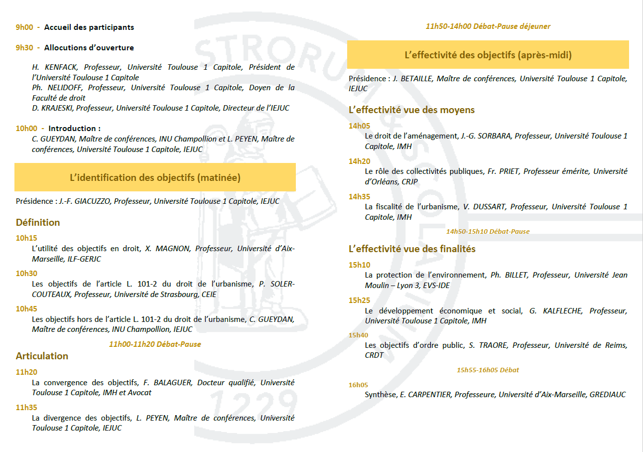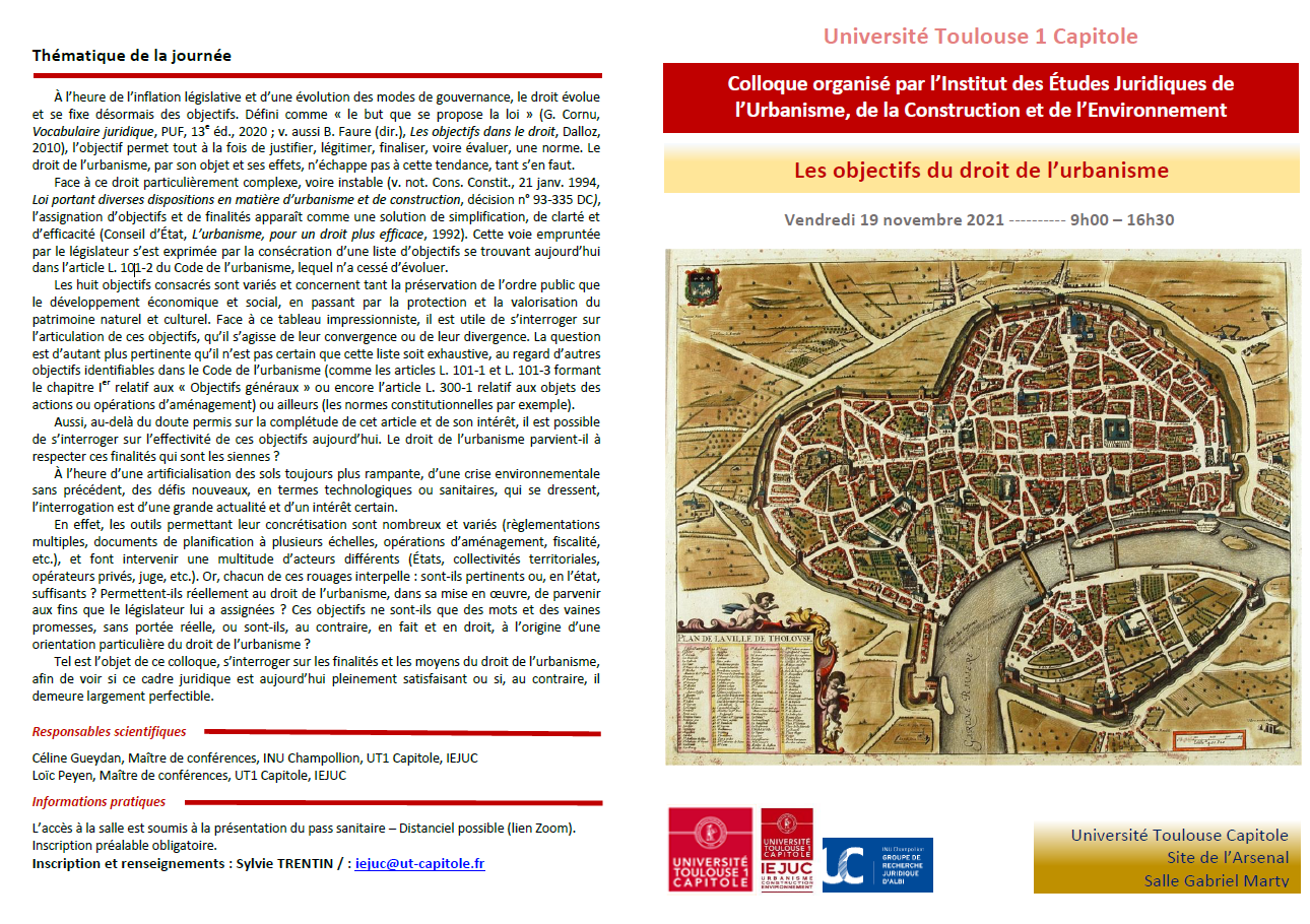 "Les objectifs du droit de l’urbanisme", colloque organisé par l’IEJUC