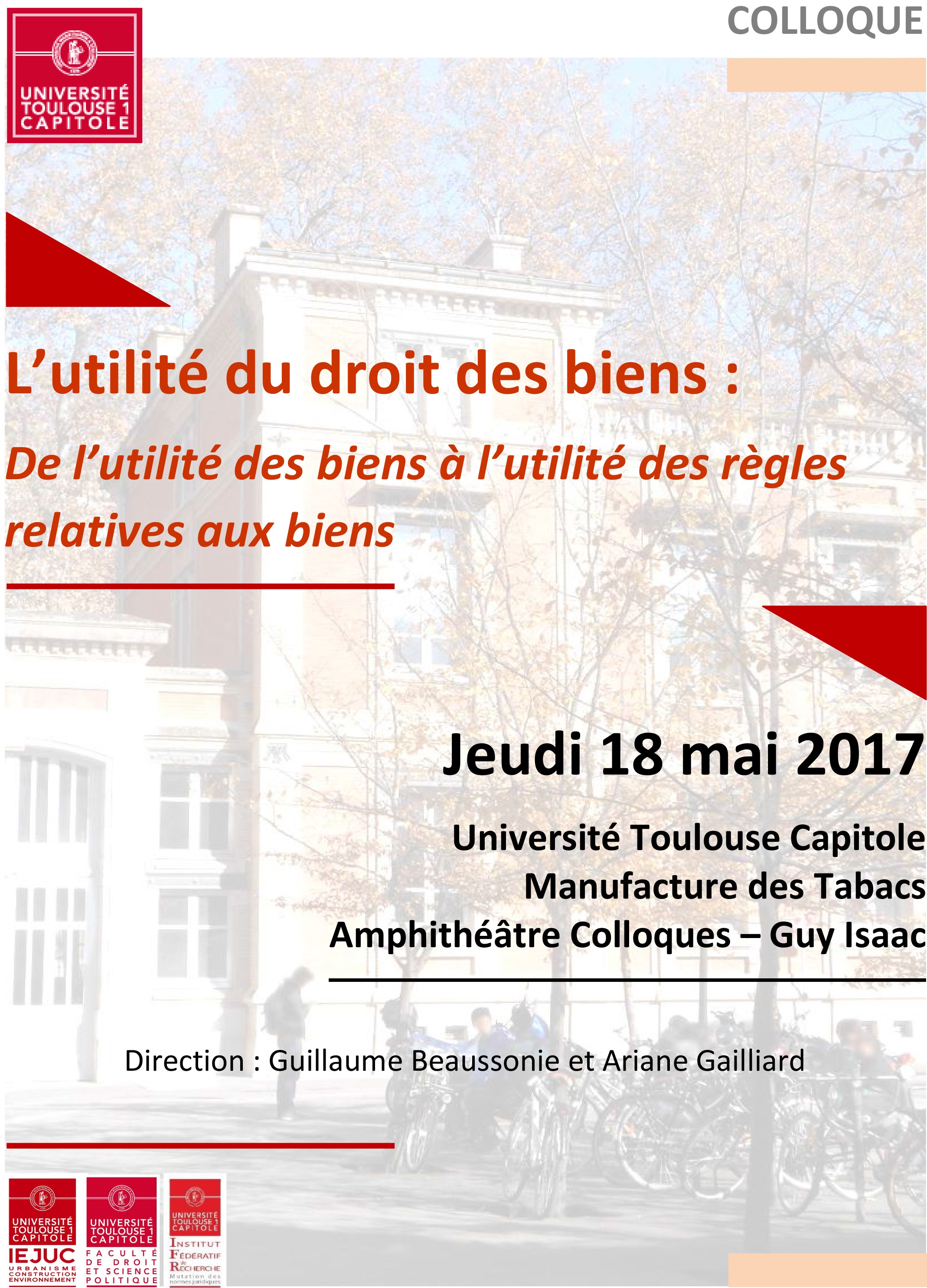 "L'utilité du droit des biens pour les autres branches du droit : de l'utilité des biens à l'utilité des règles relatives aux biens" Colloque organisé par l'IEJUC et l'IFR